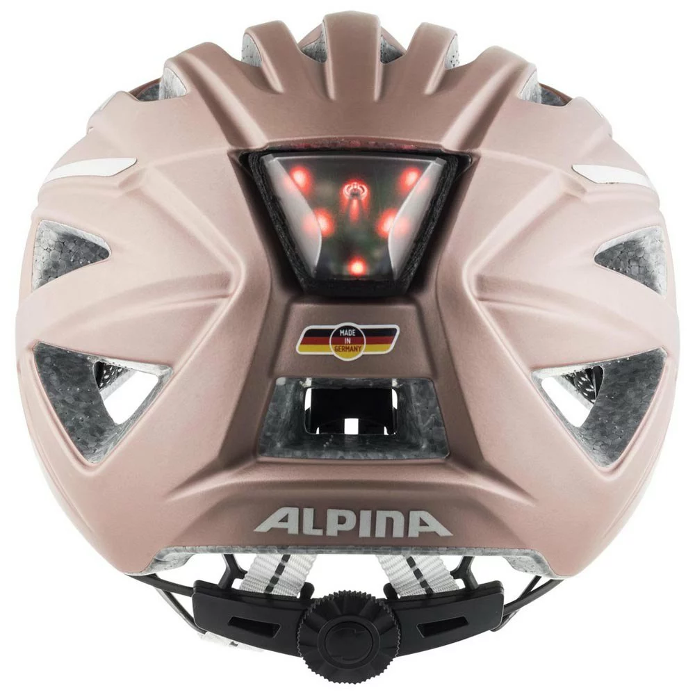 The HAGA is the new urban helmet from ALPINA: sporty, dynamic and at the same time trimmed, clean. The HAGA combines these qualities. The bike helmet is made for commuters who are active in sports and urban cyclists with high standards for their own style and safety. Thanks to Hi-EPS, a perfect fit and inmold construction, the HAGA perfectly protects in the event of a collision. An integral rear light is positioned so that it is clearly visible even from the side. Due to this positioning, the bearer is seen earlier by other road users. The proven ALPINA fit ensures that the bike helmet fits perfectly, does not slip and nothing tweaks. The dynamically designed helmet bar not only creates a light and modern urban look, but also ensures that the head is optimally ventilated. This ensures a cool head, safe road traffic decisions and maximum comfort.